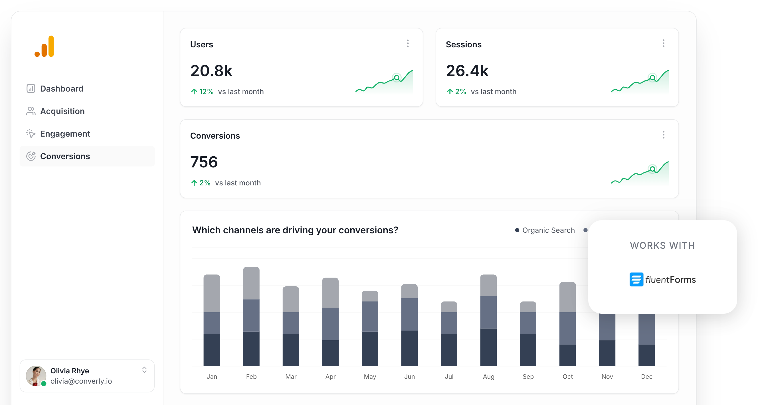 Use Converly to send conversion data to Google Analytics every time someone completes a Fluent Form on your site, all without writing any code.