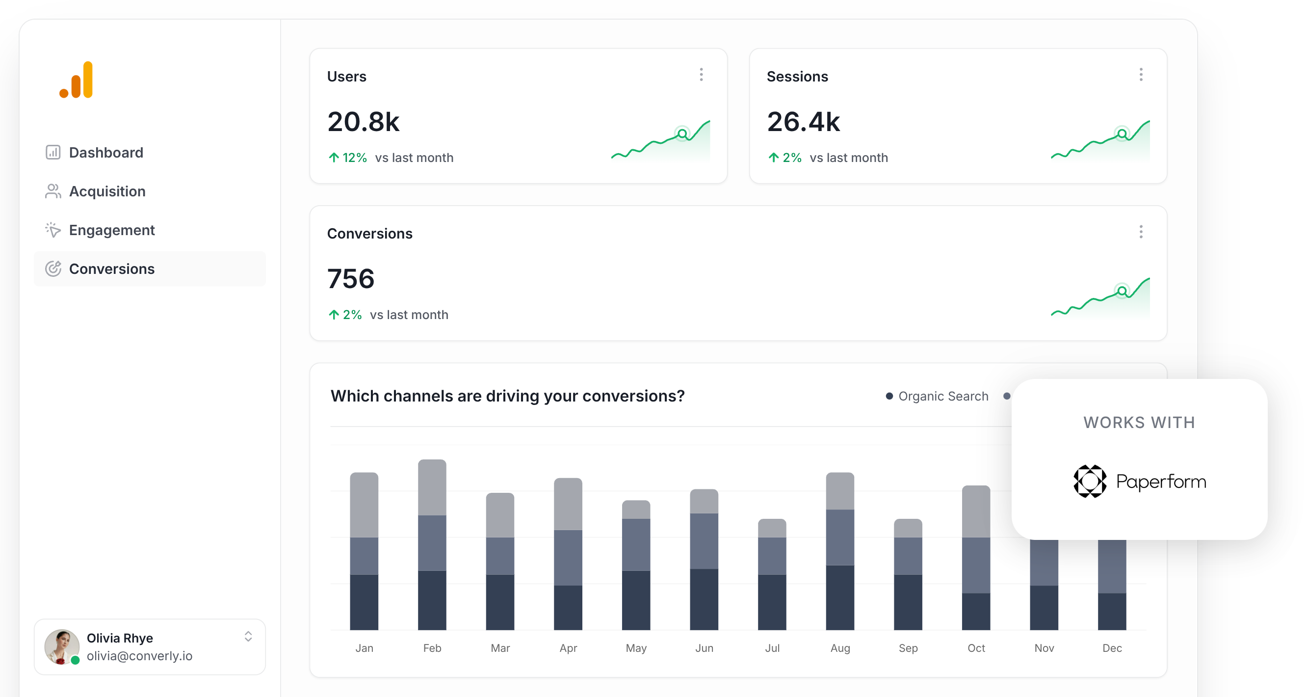 Converly makes it easy to send conversion events to Google Analytics every time someone submits a Paperform on your site. No code required, no complicated setup to deal with.